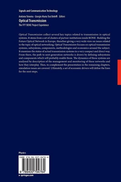 Optical Transmission represents a wide set of visions of researchers who are active in the actual research scene in Europe. An aggregate of highlights of research in transmission with a state of the art presented by the researchers who are driving it are presented. The trends on research are in this book presented by one of the widest networks of excellence put together in Europe in the field of optical networking (more than 40 Research institutions were involved). The readers will find a specialized readout of the current trends and status of transmission ranging from simulation to ultimate experimental results, from modulations to devices. A highlight of Optical Transmission is the introduction in a technical book a chapter on techno-economics, which drives the vision and field a little further.General reading could be made however is more suited for graduated users.The most important features of Optical Transmission are: wide vision on transmission related issues, state of theart and related trends and techniques; techno-economics of the field.