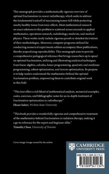 Preface 1. Introduction 2. Fractionation with a single organ-at-risk 3. Fractionation with multiple organs-at-risk 4. Robust fractionation 5. Inverse fractionation 6. Spatiotemporally integrated fractionation 7. Robust spatiotemporally integrated fractionation 8. Fractionation with two modalities 9. Robust fractionation with two modalities 10. Directions for future work Appendix Background on optimization Bibliography Index.