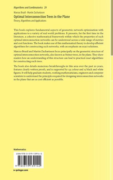 This book explores fundamental aspects of geometric network optimisation with applications to a variety of real world problems. It presents, for the first time in the literature, a cohesive mathematical framework within which the properties of such optimal interconnection networks can be understood across a wide range of metrics and cost functions. The book makes use of this mathematical theory to develop efficient algorithms for constructing such networks, with an emphasis on exact solutions.