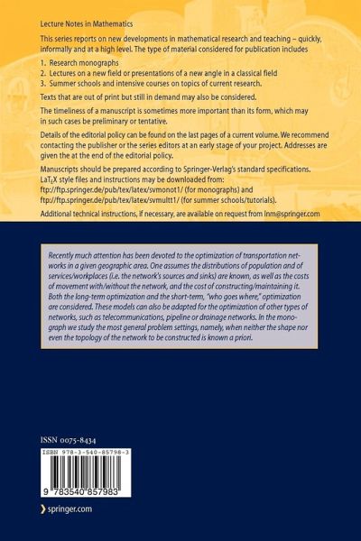 Recently much attention has been devoted to the optimization of transportation networks in a given geographic area. One assumes the distributions of population and of services/workplaces (i.e. the network's sources and sinks) are known, as well as the costs of movement with/without the network, and the cost of constructing/maintaining it. Both the long-term optimization and the short-term, "who goes where," optimization are considered. These models can also be adapted for the optimization of other types of networks, such as telecommunications, pipeline or drainage networks. In the monograph we study the most general problem settings, namely, when neither the shape nor even the topology of the network to be constructed is known a priori.