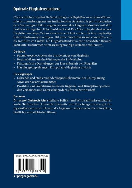 Christoph John analysiert die Standortfrage von Flughäfen unter regionalökonomischen, raumbezogenen und institutionellen Aspekten. Er geht insbesondere dem Spannungsverhältnis agglomerationsnaher Flughafenstandorte mit allen positiven wie negativen Folgen auf den Grund. Der Autor zeigt, dass bedeutende Flughäfen vor langer Zeit an Standorten errichtet wurden, die über ungünstige Rahmenbedingungen verfügen. Mit jedem Wachstumsschub verschärfen sich die Konflikte im Umfeld. Ein Flughafenstandort in dünn besiedelten Räumen kann unter bestimmten Voraussetzungen einige Probleme minimieren.