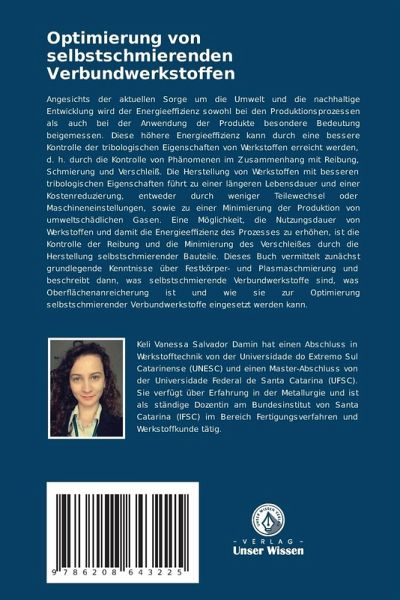 Angesichts der aktuellen Sorge um die Umwelt und die nachhaltige Entwicklung wird der Energieeffizienz sowohl bei den Produktionsprozessen als auch bei der Anwendung der Produkte besondere Bedeutung beigemessen. Diese höhere Energieeffizienz kann durch eine bessere Kontrolle der tribologischen Eigenschaften von Werkstoffen erreicht werden, d. h. durch die Kontrolle von Phänomenen im Zusammenhang mit Reibung, Schmierung und Verschleiß. Die Herstellung von Werkstoffen mit besseren tribologischen Eigenschaften führt zu einer längeren Lebensdauer und einer Kostenreduzierung, entweder durch weniger Teilewechsel oder Maschineneinstellungen, sowie zu einer Minimierung der Produktion von umweltschädlichen Gasen. Eine Möglichkeit, die Nutzungsdauer von Werkstoffen und damit die Energieeffizienz des Prozesses zu erhöhen, ist die Kontrolle der Reibung und die Minimierung des Verschleißes durch die Herstellung selbstschmierender Bauteile. Dieses Buch vermittelt zunächst grundlegende Kenntnisse über Festkörper- und Plasmaschmierung und beschreibt dann, was selbstschmierende Verbundwerkstoffe sind, was Oberflächenanreicherung ist und wie sie zur Optimierung selbstschmierender Verbundwerkstoffe eingesetzt werden kann.