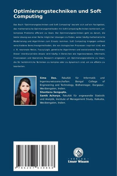 Das Buch "Optimierungstechniken und Soft Computing" bezieht sich auf ein Fachgebiet, das mathematische Optimierungsmethoden mit Soft-Computing-Techniken kombiniert, um komplexe Probleme effizient zu lösen. Bei Optimierungstechniken geht es darum, die beste Lösung aus einer Reihe möglicher Lösungen zu finden, wobei häufig mathematische Modellierung und Algorithmen zum Einsatz kommen. Soft Computing hingegen umfasst verschiedene Berechnungsmethoden, die von biologischen Prozessen inspiriert sind, wie z. B. neuronale Netze, Fuzzy-Logik, genetische Algorithmen und evolutionäres Rechnen. Dieser interdisziplinäre Ansatz wird häufig in Bereichen wie Ingenieurwesen, Informatik, Finanzwesen und Operations Research eingesetzt, um Optimierungsprobleme zu lösen, die für herkömmliche Techniken zu komplex oder zu dynamisch sind, um sie effektiv zu bearbeiten.