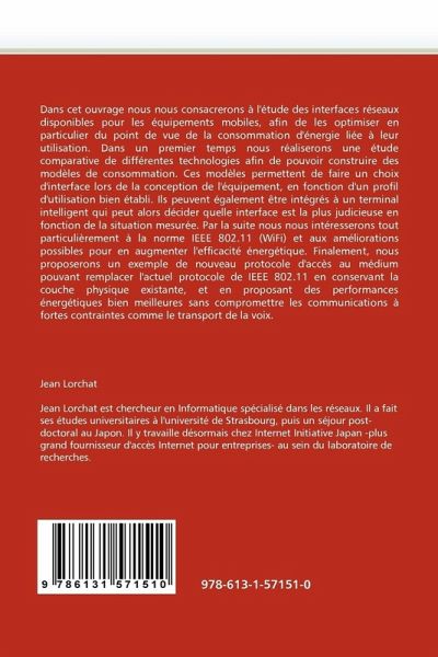 Dans cet ouvrage nous nous consacrerons à l'étude des interfaces réseaux disponibles pour les équipements mobiles, afin de les optimiser en particulier du point de vue de la consommation d'énergie liée à leur utilisation. Dans un premier temps nous réaliserons une étude comparative de différentes technologies afin de pouvoir construire des modèles de consommation. Ces modèles permettent de faire un choix d'interface lors de la conception de l'équipement, en fonction d'un profil d'utilisation bien établi. Ils peuvent également être intégrés à un terminal intelligent qui peut alors décider quelle interface est la plus judicieuse en fonction de la situation mesurée. Par la suite nous nous intéresserons tout particulièrement à la norme IEEE 802.11 (WiFi) et aux améliorations possibles pour en augmenter l'efficacité énergétique. Finalement, nous proposerons un exemple de nouveau protocole d'accès au médium pouvant remplacer l'actuel protocole de IEEE 802.11 en conservant la couche physique existante, et en proposant des performances énergétiques bien meilleures sans compromettre les communications à fortes contraintes comme le transport de la voix.
