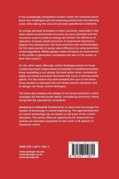 Content.- 1. Introduction.- 2. Non-linear Dynamic Modelling for Control Design.- 2.1 Introduction.- 2.2 Fundamentals of Fuzzy Logic.- 2.3 Dynamic Models Based on Fuzzy Logic.- 2.4 Parameters Estimation.- 2.5 Structure Identification.- 2.6 Discussion.- 2.7 A New Structure Identification Method for Fuzzy Models.- 3. Non-linear Predictive Control.- 3.1 Fundamentals of Predictive Control.- 3.2 Literature Review.- 3.3 Prediction from Linear Models.- 3.4 Linear Predictive Control Algorithms.- 3.5 Prediction for Non-linear Models.- 3.6 Non-linear Predictive Control.- 3.7 Discussion.- 4. Supervisory Optimal Control for a Pre-specified Regulatory Level.- 4.1 Problem Statement.- 4.2 Alternative Solutions.- 4.3 Supervisory Controller Design Based on Linear Models.- 4.4 Supervisory Controller Design Based on Non-linear Models.- 4.5 Application to a Boiler System.- 4.6 Discussion.- 5. Application to the Control of Thermal Power Plants.- 5.1 Modelling and Simulation of a Combined Cycle Power Plant.- 5.2 Control of Thermal Power Plant Boiler.- 6. Discussion and Conclusions.- Appendix A. Sensitivity Analysis Program.- Appendix B. Prediction of Controlled Variables and Manipulated Variables.- B.1 Prediction of Controlled Variables.- B.2 Prediction of Manipulated Variables.- Appendix C. Special Cases of Polynomial Cancellations.- C.1 A Quadratic Objective Function of the Manipulated Variables at the Supervisory Level.- C.2 A GPC Objective Function at the Supervisory Level.- Appendix D. Supervisory Controller Programs.- D.1 Direct Method.- D.2 Indirect Method.- D.3 One-step Fuzzy Predictor.- D.4 Multi-step Fuzzy Predictor.- Appendix E. Main Variables of a Combined Cycle Thermal Power Plant.- E.1 Boiler.- E.1.1 Furnace.- E.1.2 Risers.- E.1.3 Drum.- E.1.4 Superheater.- E.1.5 Reheater.- E.1.6 Economiser.- E.2 Steam Turbine.- E.2.1 The High Pressure Turbine.- E.2.2 The Intermediate Pressure Turbine.- E.2.3 The Low Pressure Turbine.- E.2.4 Steam Turbine.- E.3 Gas Turbine.- E.3.1 Compressor.- E.3.2 Combustion Chamber.- E.3.3 Turbine.- Appendix F. Simulator Programs in MATLAB®-SIMULINK®.- F.1 Boiler.- F.1.1 Furnace.- F.1.2 Risers.- F.1.3 Drum.- F.1.4 Superheater.- F.1.5 Reheater.- F.1.6 Economiser.- F.2 Steam Turbine.- F.2.1 The High Pressure Turbine.- F.2.2 The Intermediate Pressure Turbine.- F.2.3 The Low Pressure Turbine.- F.3 Gas Turbine.- F.3.1 Compressor.- F.3.2 Combustion Chamber.- F.3.3 Turbine.- References.