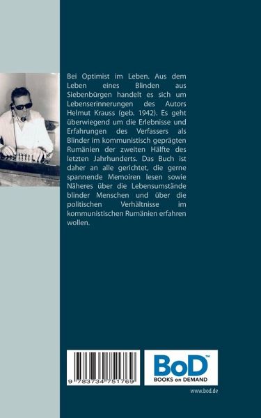Bei Optimist im Leben. Aus dem Leben eines Blinden aus Siebenbürgen handelt es sich um Lebenserinnerungen des Autors Helmut Krauss (geb. 1942). Es geht überwiegend um die Erlebnisse und Erfahrungen des Verfassers als Blinder im kommunistisch geprägten Rumänien der zweiten Hälfte des letzten Jahrhunderts. Das Buch ist daher an alle gerichtet, die gerne spannende Memoiren lesen sowie Näheres über die Lebensumstände blinder Menschen und über die politischen Verhältnisse im kommunistischen Rumänien erfahren wollen.
