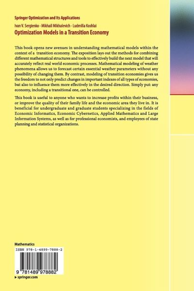 This book is useful to anyone who wants to increase profits within their business, or improve the quality of their family life and the economic area they live in. It is beneficial for undergraduate and graduate students specializing in the fields of Economic Informatics, Economic Cybernetics, Applied Mathematics and Large Information Systems, as well as for professional economists, and employees of state planning and statistical organizations.