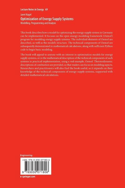 This book describes how a model for optimizing the energy supply system in Germany can be implemented. It focuses on the open energy modeling framework (Oemof) program for modeling energy supply systems. The individual elements of Oemof are described, as well as the model's structure. The technical components of Oemof are subsequently demonstrated in mathematical calculations, along with sufficient Python code to begin basic modeling.