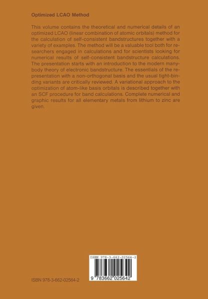 Theoretical and numerical details of an optimized LCAO (linear combination of atomic orbitals) method for the calculation of self-consistent bandstructures are given together with a variety of examples. The method will be a valuable tool both for researchers engaged in calculations and for scientists looking for numerical results of self-consistent bandstructure calculations. The presentation starts with an introduction to the modern many-body theory of electronic bandstructure. The essentials of the representation with a non-orthogonal basis and the usual tight-binding variants are critically reviewed. A variational approach to the optimization of atom-like basis orbitals is described together with an SCF procedure for band calculations. Complete numerical and graphic results for all elementary metals from lithium to zinc are given.
