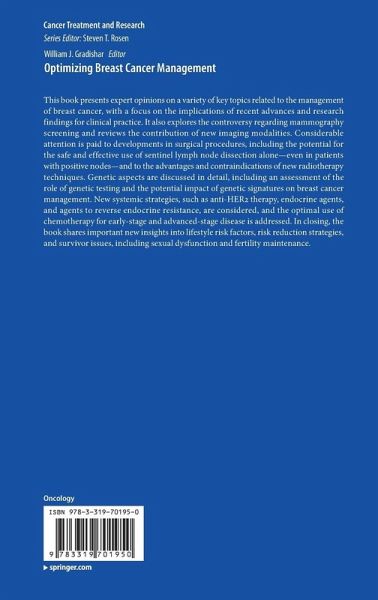 This book presents expert opinions on a variety of key topics related to the management of breast cancer, with a focus on the implications of recent advances and research findings for clinical practice. It also explores the controversy regarding mammography screening and reviews the contribution of new imaging modalities. Considerable attention is paid to developments in surgical procedures, including the potential for the safe and effective use of sentinel lymph node dissection alone-even in patients with positive nodes-and to the advantages and contraindications of new radiotherapy techniques. Genetic aspects are discussed in detail, including an assessment of the role of genetic testing and the potential impact of genetic signatures on breast cancer management. New systemic strategies, such as anti-HER2 therapy, endocrine agents, and agents to reverse endocrine resistance, are considered, and the optimal use of chemotherapy for early-stage and advanced-stage disease is addressed. Inclosing, the book shares important new insights into lifestyle risk factors, risk reduction strategies, and survivor issues, including sexual dysfunction and fertility maintenance.