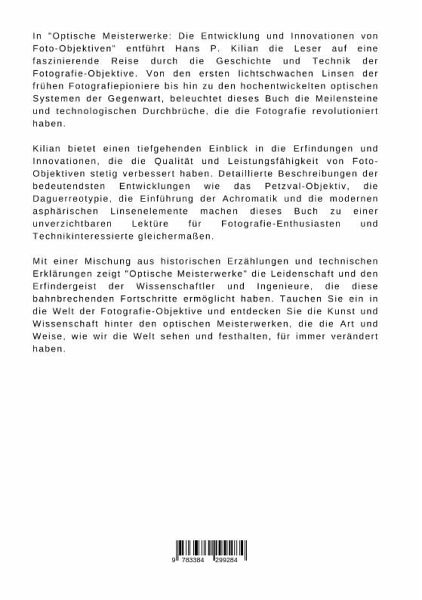 In "Optische Meisterwerke: Die Entwicklung und Innovationen von Foto-Objektiven" entführt Hans P. Kilian die Leser auf eine faszinierende Reise durch die Geschichte und Technik der Fotografie-Objektive. Von den ersten lichtschwachen Linsen der frühen Fotografiepioniere bis hin zu den hochentwickelten optischen Systemen der Gegenwart, beleuchtet dieses Buch die Meilensteine und technologischen Durchbrüche, die die Fotografie revolutioniert haben.Kilian bietet einen tiefgehenden Einblick in die Erfindungen und Innovationen, die die Qualität und Leistungsfähigkeit von Foto-Objektiven stetig verbessert haben. Detaillierte Beschreibungen der bedeutendsten Entwicklungen wie das Petzval-Objektiv, die Daguerreotypie, die Einführung der Achromatik und die modernen asphärischen Linsenelemente machen dieses Buch zu einer unverzichtbaren Lektüre für Fotografie-Enthusiasten und Technikinteressierte gleichermaßen.Mit einer Mischung aus historischen Erzählungen und technischen Erklärungen zeigt"Optische Meisterwerke" die Leidenschaft und den Erfindergeist der Wissenschaftler und Ingenieure, die diese bahnbrechenden Fortschritte ermöglicht haben. Tauchen Sie ein in die Welt der Fotografie-Objektive und entdecken Sie die Kunst und Wissenschaft hinter den optischen Meisterwerken, die die Art und Weise, wie wir die Welt sehen und festhalten, für immer verändert haben.
