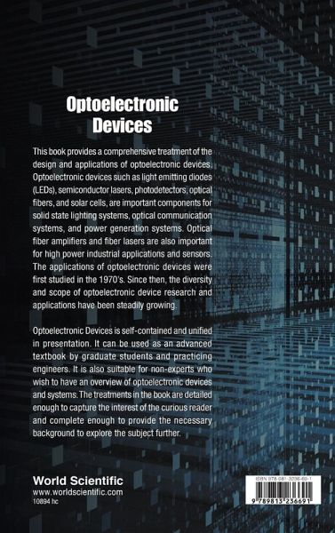 This book provides a comprehensive treatment of the design and applications of optoelectronic devices. Optoelectronic devices such as light emitting diodes (LEDs), semiconductor lasers, photodetectors, optical fibers, and solar cells, are important components for solid state lighting systems, optical communication systems, and power generation systems. Optical fiber amplifiers and fiber lasers are also important for high power industrial applications and sensors. The applications of optoelectronic devices were first studied in the 1970's. Since then, the diversity and scope of optoelectronic device research and applications have been steadily growing. Optoelectronic Devices is self-contained and unified in presentation. It can be used as an advanced textbook by graduate students and practicing engineers. It is also suitable for non-experts who wish to have an overview of optoelectronic devices and systems. The treatments in the book are detailed enough to capture the interest of the curious reader and complete enough to provide the necessary background to explore the subject further.