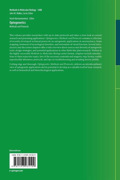 Cutting edge and thorough, Optogenetic: Methods and Protocols, deliversan interdisciplinary view of optogenetic applications and its potential todevelop as a valuable tool for basic research, as well as biomedical andbiotechnological applications.