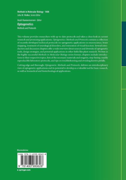 Cutting edge and thorough, Optogenetic: Methods and Protocols, deliversan interdisciplinary view of optogenetic applications and its potential todevelop as a valuable tool for basic research, as well as biomedical andbiotechnological applications.