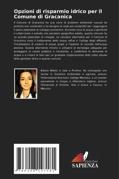 Il Comune di Gracanica ha una serie di problemi ambientali causati da pratiche non sostenibili e ha bisogno di modi più sostenibili per raggiungere il pieno potenziale di sviluppo economico. Essendo ricco di acque superficiali e sotterranee e avendo una posizione geografica adatta, questo comune ha un grande potenziale di sviluppo. Le soluzioni alternative per il Comune di Gracanica sono il trattamento delle acque reflue e l'utilizzo degli effluenti, l'installazione di sistemi di acque grigie e l'opzione di raccolta dell'acqua piovana. Queste alternative mirano a utilizzare la tecnologia adeguata per proteggere la salute pubblica e l'ambiente, a soddisfare la domanda di acqua e a creare le basi per un graduale miglioramento dello stato attuale della gestione idrica in questo comune.
