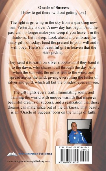{How to get there without getting lost} The light is growing in the sky from a sparkling new sun. Yesterday is over. A new day has begun. And the past can no longer make you weep if you leave it in the shadows. Let it sleep. Look ahead and embrace the many gifts of today; bend the present to your will and it will obey. There's a beautiful gift in heaven that the stars pick up. They send it to earth on silver ribbons until they hand it to the dawn, who shares it all through the day. And when the sun sets, the gift is lent to the wind, and spread across the land, giving everything the luster of silver and gold, which all but the blindest eyes can see. The gift lights every trail, illuminating souls, and fanning the world with unique warmth that inspires beautiful dreams of success, and a realization that those dreams can materialize out of the darkness. That beauty is an 'Oracle of Success' born on the wings of faith.