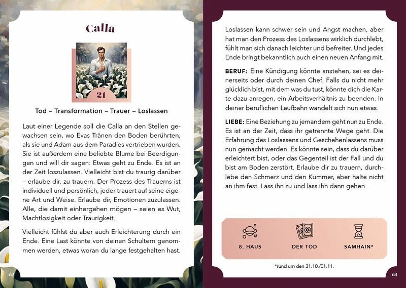 Öffne deinen Geist für die Schönheit der Natur und lasse die zarte Pflanze der Selbsterkenntnis zu einer strahlenden Blüte heranwachsen. Trete ein in die Welt der Blüten und Blumen und lerne ihre Botschaften zu lesen. Finde heraus, wie du ihre spezifische Bedeutung für dich nutzen kannst, und lasse dich von ihnen leiten: Welche Botschaft hält die Magnolie für deine berufliche Zukunft bereit? Und was bedeutet das Schneeglöckchen für deine aktuellen Beziehungsthemen? Ziehe eine Orakelkarte und finde die Antworten, nach denen du schon lange suchst.