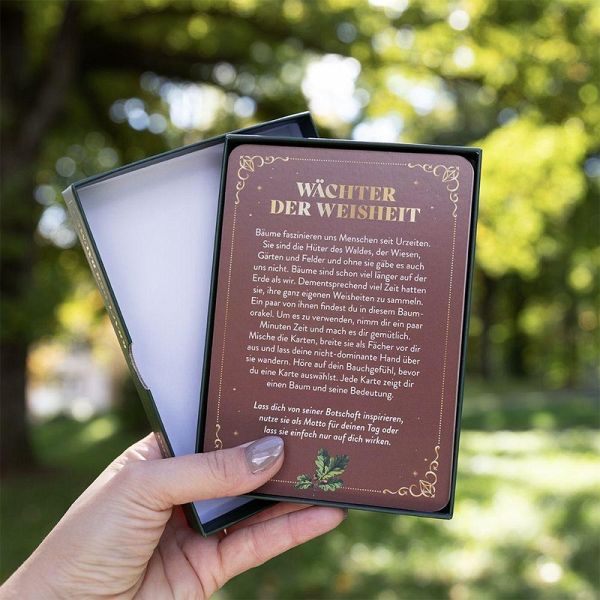 50 Baum-Orakelkarten mit inspirierenden BotschaftenImpulsgeber und Wegbegleiter für jeden TagKleine Handlungsanleitungen und Entscheidungshilfen für große und kleine Fragen des LebensEin Geschenk voller Magie und Weisheit für alle, die sich mit der Natur verbinden möchtenHochwertige spirituelles Kartenset in Geschenk-Box mit Goldfolie