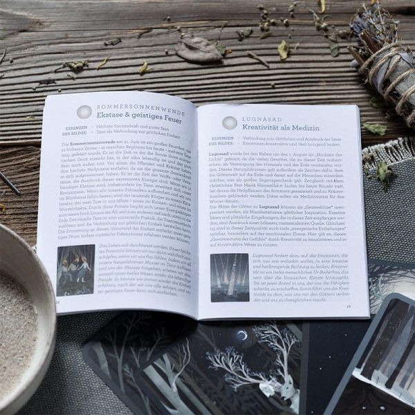 Tarotkarten mit Motiven aus Natur und paganer MythologieDas Booklet liefert Hintergrundinfos zu mythologischen Hintergründen, Legesystemen und ReflexionsaufgabenZauberhaft illustriertes Natur-Orakel in einer hochwertigen, mit Silberfolie veredelten BoxKartendeck mit 48 Orakelkarten und 64-seitigem Booklet (Maße: 12,0 x 16,5 cm)