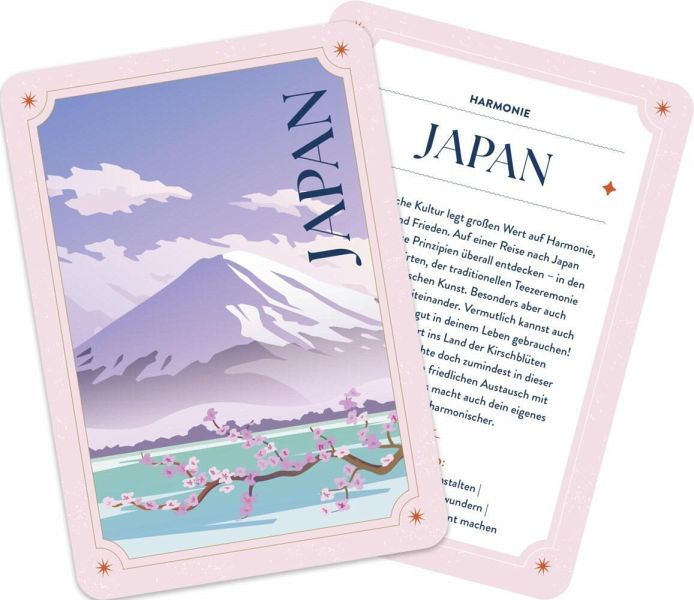 Und so funktioniert's: Mische das Kartenset sorgfältig durch und ziehe zufällig eine Orakelkarte. Auf jeder Karte findest du nicht nur ein Ziel, sondern auch eine kurze Botschaft, warum das Universum dich genau dorthin schicken will. Lass dich überraschen, was das Orakel für dich bereithält und wie gut es deine Bedürfnisse kennt. Nicht in Reise-Laune? Kein Problem! Auf jeder Karte findest du kleine Inspirationen, wie du dir das Lebensgefühl der Destination in dein eigenes Zuhause holen kannst - ganzohne Jetlag oder Reisestress.