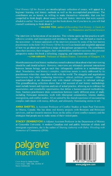 "By acknowledging the personal impact of doing oral history work, this valuable collection of reflections is a wonderful bridge among academic disciplines as well as for those of us who practice oral history outside of academia: all practitioners are important to include in these ethical and theoretical discussions." (Sady Sullivan, The Oral History Review, Vol. 44 (2), 2017)
