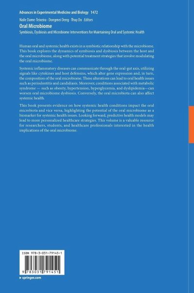 This book presents evidence on how systemic health conditions impact the oral microbiota and vice versa, highlighting the potential of the oral microbiome as a biomarker for systemic health issues. Looking forward, predictive health models may lead to more personalized healthcare strategies. This volume is a valuable resource for researchers, students, and healthcare professionals interested in the health implications of the oral microbiome.