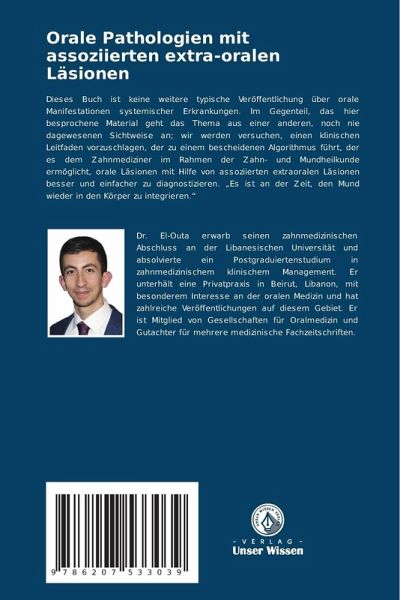 Dieses Buch ist keine weitere typische Veröffentlichung über orale Manifestationen systemischer Erkrankungen. Im Gegenteil, das hier besprochene Material geht das Thema aus einer anderen, noch nie dagewesenen Sichtweise an; wir werden versuchen, einen klinischen Leitfaden vorzuschlagen, der zu einem bescheidenen Algorithmus führt, der es dem Zahnmediziner im Rahmen der Zahn- und Mundheilkunde ermöglicht, orale Läsionen mit Hilfe von assoziierten extraoralen Läsionen besser und einfacher zu diagnostizieren. "Es ist an der Zeit, den Mund wieder in den Körper zu integrieren."