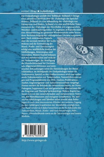 Das Werk behandelt in 18 Kapiteln den gesamten aktuellen Wissensstand der Pathologie der Mundhöhle mit angrenzendem Weichteil- und Knochengewebe unter Berücksichtigung der umfangreichen Literatur. Die zahlreichen Abbildungen und Tabellen sollen sowohl dem interessierten Kliniker wie auch dem Pathologen den weiteren Zugang zu den vielfältigen Krankheiten der Mundhöhle ermöglichen. Der Band wendet sich daher besonders an die Fachdiziplinen der Zahnmedizin, Mund-, Kiefer- und Gesichtschirurgie, Hals-, Nasen-, Ohrenheilkunde sowie an die Dermatologie und Innere Medizin.
