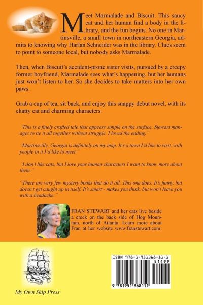 Meet Marmalade and Biscuit. This saucy cat and her human find a body in the library. When Biscuit's sister visits, pursued by a creepy former boyfriend, Marmalade sees what's happening, but her humans just won't listen to her, so she decides to take matters into her own paws.