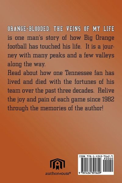 Orange-Blooded: The Veins of My Life is one man's story of how Big Orange football has touched his life. It is a journey with many peaks and a few valleys along the way. Read about how one Tennessee fan has lived and died with the fortunes of his team over the past three decades. Relive the joy and pain of each game since 1982 through the memories of the author!