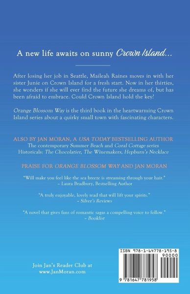 The fun continues on Crown Island! A romantic, friends-to-lovers island story. After losing her job in Seattle, Maileah moves in with her sister Junie on Crown Island for a fresh start. Now in her thirties, she wonders if she will ever find the partner and future she has dreamed of. When she decides to use a dating app, her friend Sailor, a champion surfer, insists on vetting the suitors. But what happens next is the real surprise. From the USA Today bestselling author of the Summer Beach and Coral Cottage series, Orange Blossom Way is the third in the Crown Island series about a quirky small town with fascinating characters. If you love clean romance and women's fiction with fun characters you'll want as friends, this series is for you. Here's what readers are saying about Jan's books: "A small-town beach series with all the good feels." "This is a fun summer read with a positive vibe!" "Plan on drinking a pot of coffee, ignoring your family, and putting off household chores!"