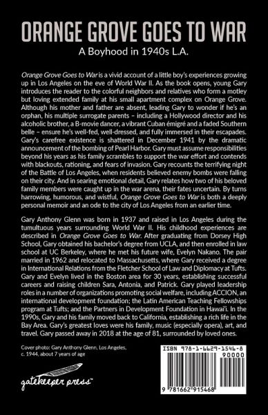 Orange Grove Goes to War is a vivid account of a little boy's experiences growing up in Los Angeles on the eve of World War II. As the book opens, young Gary introduces the reader to the colorful neighbors and relatives who form a motley but loving extended family at his small apartment complex on Orange Grove. Although his mother and father are absent, leading Gary to wonder if he's an orphan, his multiple surrogate parents - including a Hollywood director and his alcoholic brother, a B-movie dancer, a vibrant Cuban émigré and a faded Southern belle - ensure he's well fed, well dressed, and fully immersed in their escapades. Gary's carefree existence is shattered in December 1941 by the dramatic announcement of the bombing of Pearl Harbor. Gary must assume responsibilities beyond his years as his family scrambles to support the war effort and contends with blackouts, rationing, and fears of invasion. Gary recounts the terrifying night of the Battle of Los Angeles, when residents believed enemy bombs were falling on their city. And in searing emotional detail, Gary relates how two of his beloved family members were caught up in the war arena, their fates uncertain. By turns harrowing, humorous, and wistful, Orange Grove Goes to War is both a deeply personal memoir and an ode to the city of Los Angeles from an earlier time.