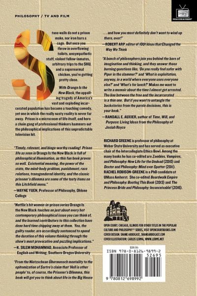This collection of 18 chapters by talented philosophical minds probes some of the many lessons to be learned from Orange Is the New Black. The show and the book that inspired it both dramatically highlight the troubling, stressful situation of millions of incarcerated Americans. How do the show’s shower scenes shed light on the classical mind-body problem? How can we make our lives meaningful when our options are curtailed by authority? What does it mean to manipulate someone, and why is it bad? What can we learn about human beliefs from Pennsatucky’s notion of the gay agenda? Is Litchfield Prison a preparation for life outside or just a scale model of life outside? What could the governors of Litchfield learn from Jeremy Bentham and his panopticon? How is it that even in prison we find ourselves condemned to be free? Why is one of the worst things about prison being forced to see who and what we really are? It so happens that life in prison is overfull of philosophical implications. Orange Is the New Black and Philosophy stays close to the characters and scenes of the TV show, applying insights from ethics, existentialism, metaphysics, epistemology, and political philosophy.