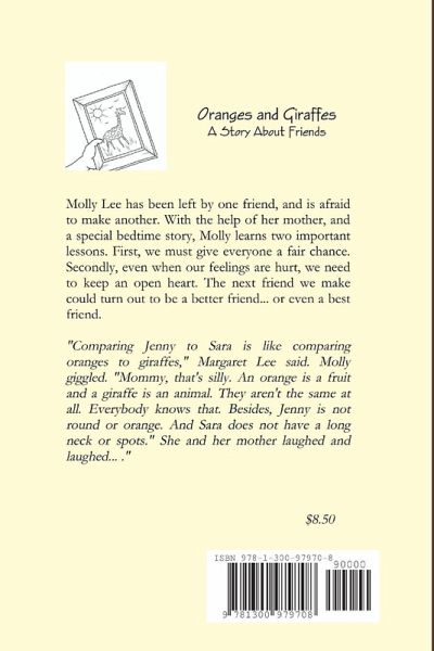Molly Lee has been left by one friend, and is afraid to make another. With the help of her mother, and a special bedtime story, Molly learns two important lessons. First, we must give everyone a fair chance. Secondly, even when our feelings are hurt, we need to keep an open heart. The next friend we make could turn out to be a better friend...or even a best friend.