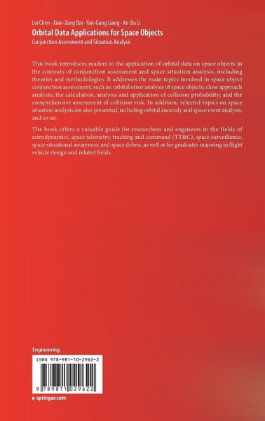 This book introduces readers to the application of orbital data on space objects in the contexts of conjunction assessment and space situation analysis, including theories and methodologies. It addresses the main topics involved in space object conjunction assessment, such as: orbital error analysis of space objects; close approach analysis; the calculation, analysis and application of collision probability; and the comprehensive assessment of collision risk. In addition, selected topics on space situation analysis are also presented, including orbital anomaly and space event analysis, and so on.
