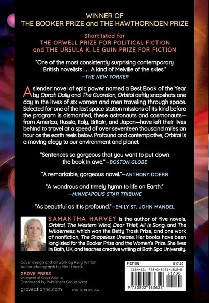 WINNER OF THE BOOKER PRIZE 2024 - A NEW YORK TIMES BESTSELLER **New York Times Book Review Book Club Pick** **Stephen Colbert's The Late Show Book Club Pick** Winner of the 2024 Hawthornden Prize Shortlisted for the 2024 Orwell Prize for Political Fiction Shortlisted for the 2024 Ursula K. Le Guin Prize for Fiction Shortlisted for the 2024 Climate Fiction Prize One of Barack Obama's Favorite Books of 2024 A singular new novel from Betty Trask Prize-winner Samantha Harvey, Orbital is an eloquent meditation on space and life on our planet through the eyes of six astronauts circling the earth in 24 hours "Ravishingly beautiful." - Joshua Ferris, New York Times A slender novel of epic power and the winner of the Booker Prize 2024, Orbital deftly snapshots one day in the lives of six women and men traveling through space. Selected for one of the last space station missions of its kind before the program is dismantled, these astronauts and cosmonauts--from America, Russia, Italy, Britain, and Japan--have left their lives behind to travel at a speed of over seventeen thousand miles an hour as the earth reels below. We glimpse moments of their earthly lives through brief communications with family, their photos and talismans; we watch them whip up dehydrated meals, float in gravity-free sleep, and exercise in regimented routines to prevent atrophying muscles; we witness them form bonds that will stand between them and utter solitude. Most of all, we are with them as they behold and record their silent blue planet. Their experiences of sixteen sunrises and sunsets and the bright, blinking constellations of the galaxy are at once breathtakingly awesome and surprisingly intimate. Profound and contemplative, Orbital is a moving elegy to our environment and planet.
