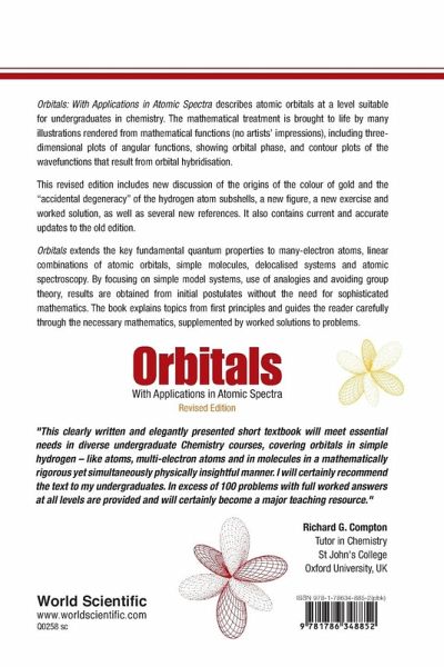 Orbitals: With Applications in Atomic Spectra describes atomic orbitals at a level suitable for undergraduates in chemistry. The mathematical treatment is brought to life by many illustrations rendered from mathematical functions (no artists' impressions), including three-dimensional plots of angular functions, showing orbital phase, and contour plots of the wavefunctions that result from orbital hybridisation. This revised edition includes new discussion of the origins of the colour of gold and the "accidental degeneracy" of the hydrogen atom subshells, a new figure, a new exercise and worked solution, as well as several new references. It also contains current and accurate updates to the old edition. Orbitals extends the key fundamental quantum properties to many-electron atoms, linear combinations of atomic orbitals, simple molecules, delocalised systems and atomic spectroscopy. By focusing on simple model systems, use of analogies and avoiding group theory, results are obtained from initial postulates without the need for sophisticated mathematics. The book explains topics from first principles and guides the reader carefully through the necessary mathematics, supplemented by worked solutions to problems.