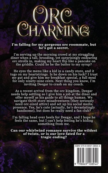 I'm falling for my gorgeous orc roommate, but he's got a secret. I'm serving up the morning crowd at my struggling diner when a tall, brooding, yet surprisingly endearing orc strolls in, making my heart flip like a pancake on the griddle. Could he be the butter to my syrup? He eyes the menu like a kid in a candy store, and it tugs on my heartstrings. Is he down on his luck? I trust my gut and give him my breakfast special, a full meal for only ninety-nine cents. Next thing you know, I'm inviting Deegar to crash on my couch. As a recent arrival from the orc kingdom, Deegar needs help settling so I give him a job at the diner and offer myself as his guide to all things human. We navigate thrift store misadventures (they seriously need orc-sized attire) and set up his social media presence. Yes, he's cute (actually, he's devastatingly handsome), but does he really need a fan club? I'm falling head over heels for Deegar, and I hope he feels the same, but I can't help feeling he's hiding something from me. Can our whirlwind romance survive the wildest of twists, or is our love fated for a tragic ending?