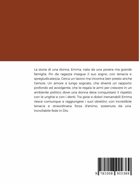 La storia di una donna, Emma, nata da una povera ma grande famiglia. Fin da ragazza insegue il suo sogno, con tenacia e spregiudicatezza. Cerca un lavoro ma incontra ben presto anche l'amore. Un amore a lungo sognato, che diverrà un rapporto profondo ed avvolgente, che le regala le armi per crescere in un ambiente politico dove una donna deve conquistarsi il rispetto con le unghie e con i denti. Tra gioie e dolori inenarrabili Emma riesce comunque a raggiungere i suoi obiettivi, con incredibile tenacia e straordinaria forza d'animo, sostenuta da una incrollabile fede in Dio.