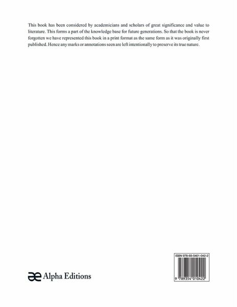 This book has been considered by academicians and scholars of great significance and value to literature. This forms a part of the knowledge base for future generations. So that the book is never forgotten we have represented this book in a print format as the same form as it was originally first published. Hence any marks or annotations seen are left intentionally to preserve its true nature.