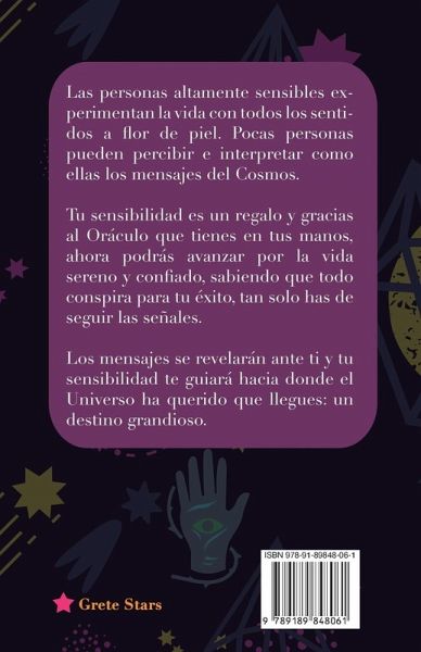 Las personas altamente sensibles experimentan la vida con todos los sentidos a flor de piel. Pocas personas pueden percibir e interpretar como ellas los mensajes del Cosmos. Tu sensibilidad es un regalo y gracias al Oráculo que tienes en tus manos, ahora podrás avanzar por la vida sereno y confiado, sabiendo que todo conspira para tu éxito, tan solo has de seguir las señales. Los mensajes se revelarán ante ti y tu sensibilidad te guiará hacia donde el Universo ha querido que llegues: un destino grandioso. El poder está dentro de nosotros, solo hay que saber escuchar. Este libro Oráculo te mostrará las respuestas para no desviarte de tu camino. Un camino sabio y lleno de luz. Formula una pregunta en tu interior y pide al libro que te ilumine. Su consejo y sabiduría te sorprenderán y a la vez, te harán sentir que tú ya todo lo sabías. Libro, magia, Cosmos y mente, todos están unidos, todos saben las respuestas. Bienvenido a una vida sabia y plena. Inspirado en la sabiduría milenaria del I-Ching y de la Numerología. Formula una pregunta en tu interior y escoge al azar una página del libro: la respuesta se te mostrará.