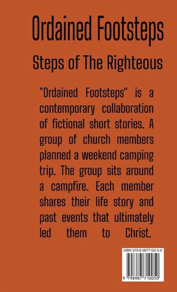 "ORDAINED FOOTSTEPS" is a fictional inspirational book of short-stories. It is about a group of church members who decide to take a weekend hiking trip. The group gathers around a campfire where each member will share their life stories. They will each speak about the trials and tribulations they encountered before dedicating their lives to Christ.