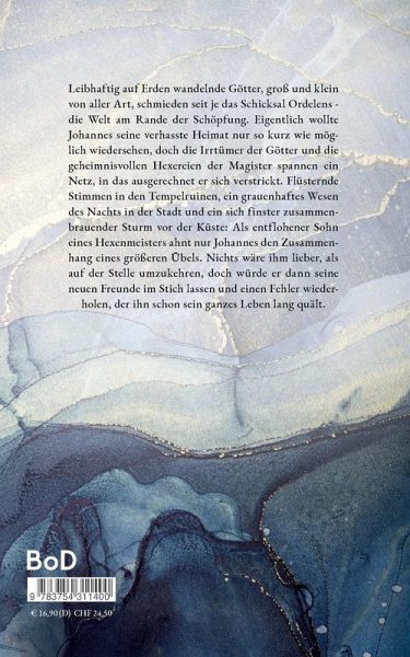 Leibhaftig auf Erden wandelnde Götter, groß und klein von aller Art, schmieden seit je das Schicksal Ordelens - die Welt am Rande der Schöpfung. Eigentlich wollte Johannes seine verhasste Heimat nur so kurz wie möglich wiedersehen, doch die Irrtümer der Götter und die geheimnisvollen Hexereien der Magister spannen ein Netz, in das ausgerechnet er sich verstrickt. Flüsternde Stimmen in den Tempelruinen, ein grauenhaftes Wesen des Nachts in der Stadt und ein sich finster zusammenbrauender Sturm vor der Küste: Als entflohener Sohn eines Hexenmeisters ahnt nur Johannes den Zusammenhang eines größeren Übels. Nichts wäre ihm lieber, als auf der Stelle umzukehren, doch würde er dann seine neuen Freunde im Stich lassen und einen Fehler wiederholen, der ihn schon sein ganzes Leben lang quält.