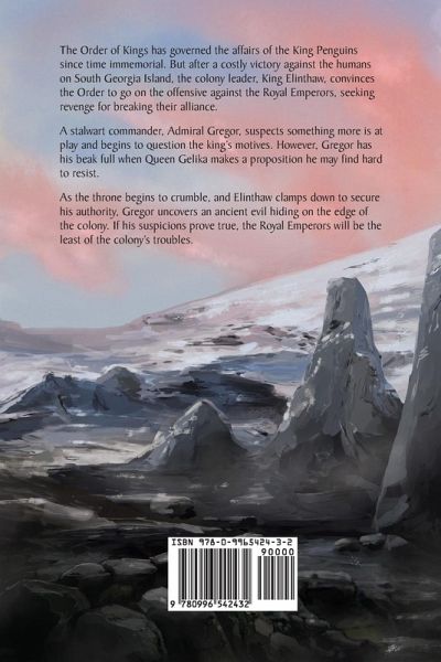 The Order of Kings has governed the affairs of the King Penguins since time immemorial. But after a costly victory against the humans on South Georgia Island, the colony leader, King Elinthaw, convinces the Order to go on the offensive against the Royal Emperors, seeking revenge for breaking their alliance. A stalwart commander, Admiral Gregor, suspects something more is at play and begins to question the king’s motives. However, Gregor has his beak full when Queen Gelika makes a proposition he may find hard to resist. As the throne begins to crumble, and Elinthaw clamps down to secure his authority, Gregor uncovers an ancient evil hiding on the edge of the colony. If his suspicions prove true, the Royal Emperors will be the least of the colony’s troubles.