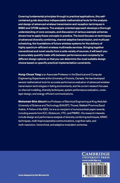Hong-Chuan Yang is an Associate Professor in the Electrical and Computer Engineering Department at the University of Victoria, Canada. He has developed several mathematical tools for accurate performance evaluation of advanced wireless transmission technologies in fading environments and his current research focuses on channel modelling, diversity techniques, system performance evaluation, cross-layer design and energy efficient communications.