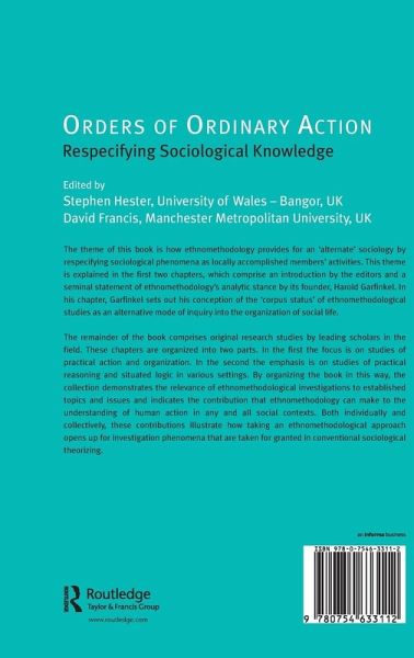 Presenting original research studies by leading scholars in the field, Orders of Ordinary Action considers how ethnomethodology provides for an 'alternate' sociology by respecifying sociological phenomena as locally accomplished members' activities. Following an introduction by the editors and a seminal statement of ethnomethodology's analytic stance by its founder, Harold Garfinkel, the book then comprises two parts. The first introduces studies of practical action and organization, whilst the second provides studies of practical reasoning and situated logic in various settings. By organizing the book in this way, the collection demonstrates the relevance of ethnomethodological investigations to established topics and issues and indicates the contribution that ethnomethodology can make to the understanding of human action in any and all social contexts. Both individually and collectively, these contributions illustrate how taking an ethnomethodological approach opens up for investigation phenomena that are taken for granted in conventional sociological theorizing.