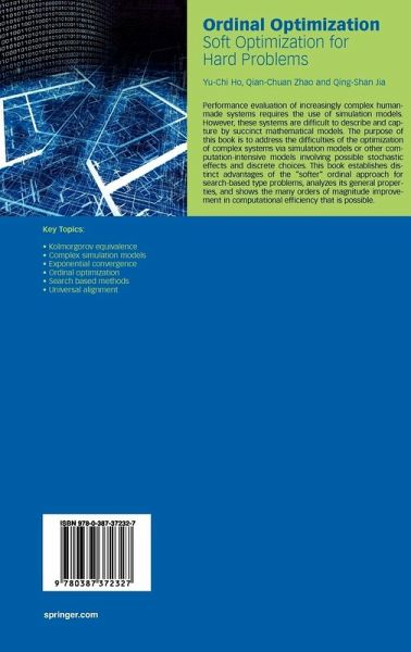 The purpose of this book is to address the difficulties of the optimization of complex systems via simulation models or other computation-intensive models involving possible stochastic effects and discrete choices. This book will establish distinct advantages of the "softer" ordinal approach for search-based type problems, analyze its general properties, and show the many orders of magnitude improvement in computational efficiency that is possible.