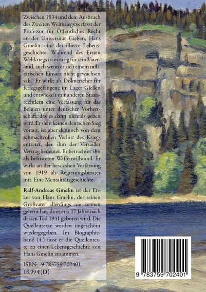 Hans Gmelin beginnt nach 1933 die Zeit, in der er sonst juristische Veröffentlichungen verfasst hätte, wegen der fehlenden Meinungsfreiheit im Dritten Reich für die Niederschrift einer ausführlichen handschriftlichen Autobiographie aufzuwenden.Der zweite Band schildert die Zeit als außerordentlicher Professor in Kiel und als Ordinarius an der kleinen hessen-darmstädtischen Ludwigsuniversität in Gießen, wo er bis zu seinem Tod Professor für öffentliches Recht mit dem Schwerpunkt auf Staatsrecht bleiben wird.Als Liberaler in der DVP gelingt ihm nicht der Sprung in ein Landes- oder gar Reichsparlament, und so kann er die Weimarer Verfassung kaum beeinflussen, wird aber als Regierungsberater der hessen-darmstädtischen Regierung deutliche Spuren in deren Verfassung von 1919 hinterlassen