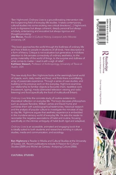 Ben Highmore's Ordinary Lives is a groundbreaking intervention into the burgeoning field of everyday life studies. It takes contemporary cultural studies into some exciting new critical directions [...] Highmore's book is digressive but always coherent, deeply personal but always scholarly, entertaining and evocative but always rigorous and thought-provoking - Joe Moran, Reader in Cultural History, Liverpool John Moores University, UK