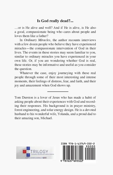 Is God really dead?... ...or is He alive and well? And if He is alive, is He also a good, compassionate being who cares about people and loves them like a father? In Ordinary Miracles, the author recounts interviews with a few dozen people who believe they have experienced miracles-the compassionate intervention of God in their lives. The events in these stories may seem familiar to you, similar to ordinary miracles you have experienced in your own life. Or, if you are wondering whether God is real, these stories may be informative and useful as you consider the question. Whatever the case, enjoy journeying with these real people through some of their most interesting and intense moments, their feelings of distress, fear, and faith, and their joy and amazement when God shows up.